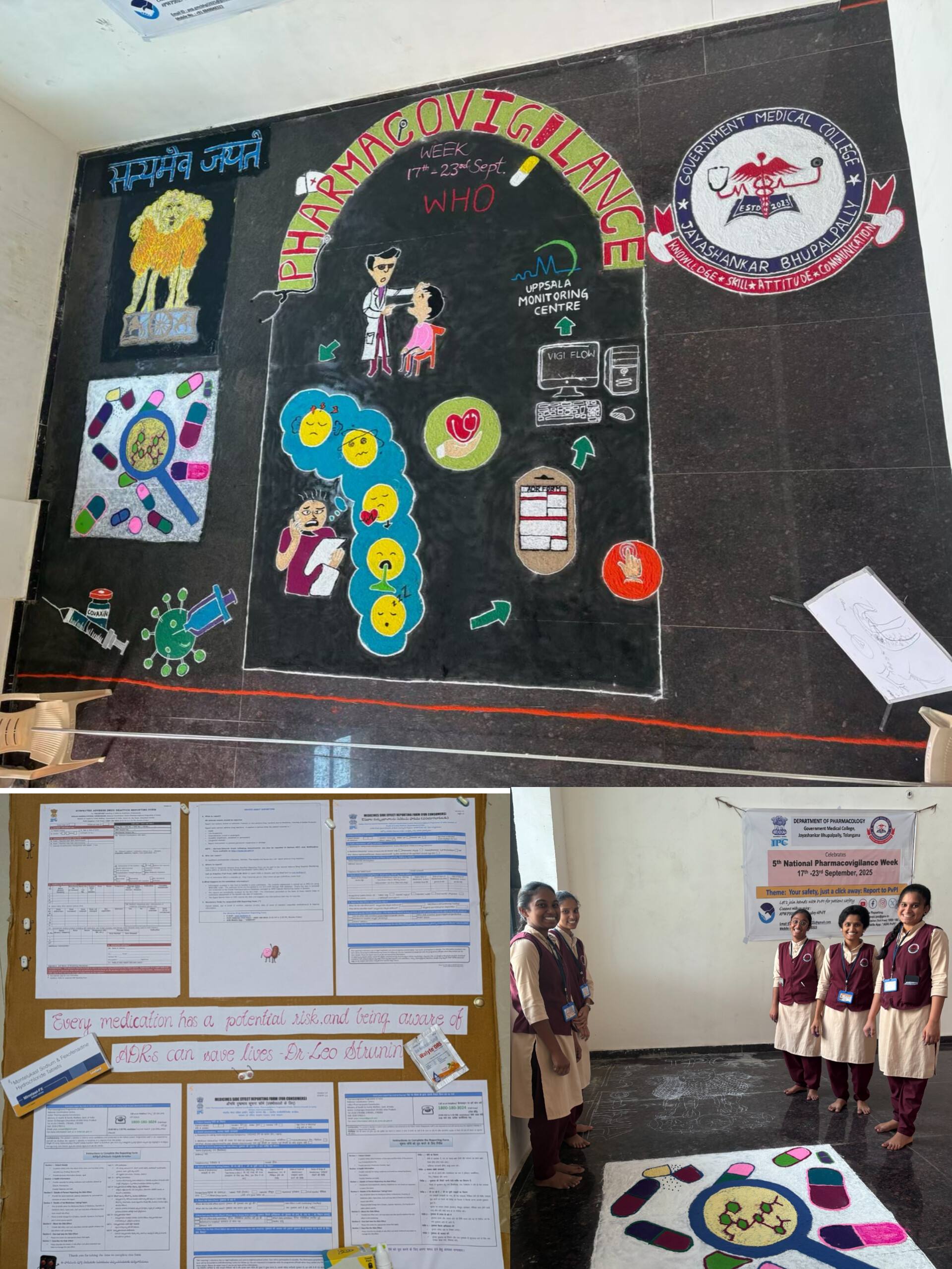 The Programme was led by Vice Principal /Professor and Head of the Department, Dr.B.Sridhar Rao, with key contributions from Senior Residents Dr. Sruthi S Nambiar and Dr.B.Jyothi. The event was honored by the presence of the Principal Dr.J.Venkateshwarlu and Both Vice Principals of Government Medical College, Jayashankar Bhupalpally Dr.K.Rajesh, whose active involvement underscored the institution’s commitment to advancing Pharmacovigilance.